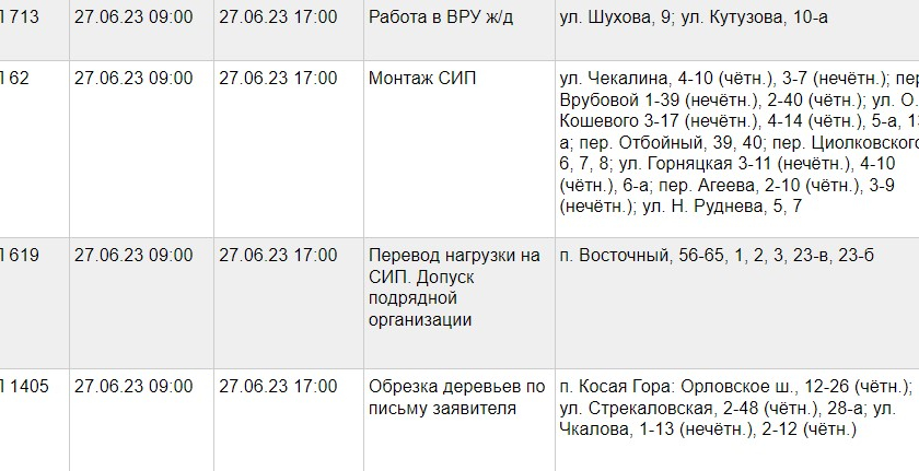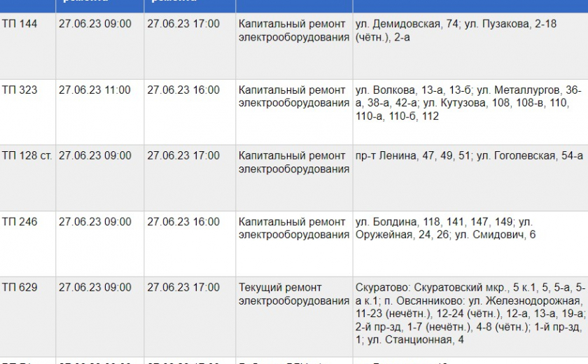 Отключения пройдут из-за ремонтных работ и кронирования. Тулякамстоит ожидать их завершения с 09:00 или 11:00 до 16:00 или 17:00 в зависимости от адреса.