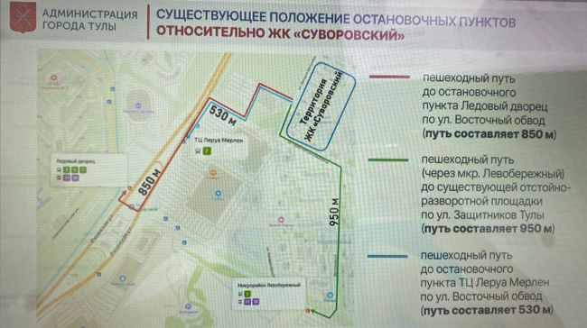 «Одна из проблем — это доступность прохода к торговым центрам и остановке. Раньше могли проходит и проезжать через территорию «Леруа Мерлен». Но так как там достаточно активная зона — разгружается много фур, то в целях безопасности территорию закрыли для частного транспорта. Пешеходам оставили небольшой проход. Неудобный. Я сам там был в воскресенье — смотрел», — рассказал глава администрации Тулы Илья Беспалов.