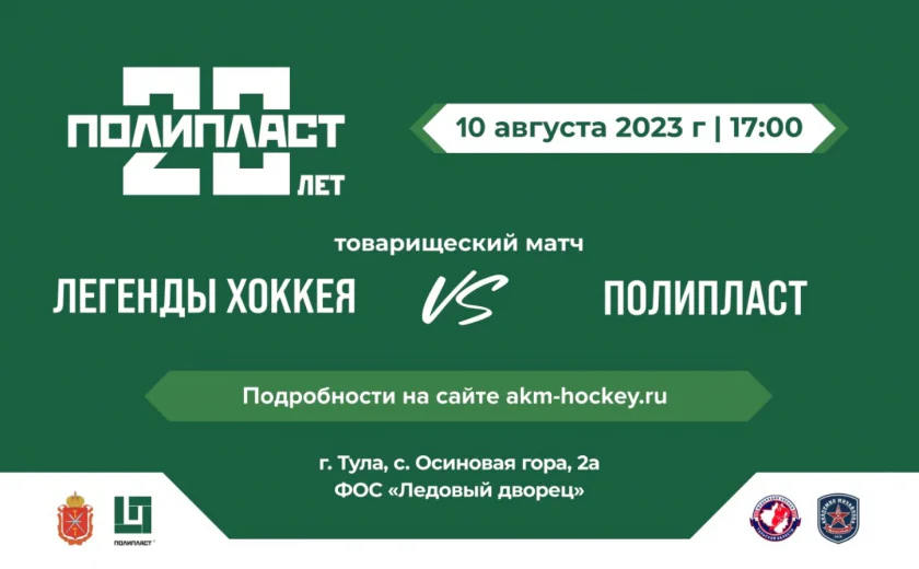 10 августа в Ледовом дворце Тулы пройдёт товарищеский матч, посвященный 20-летию компании «Полипласт Новомосковск».