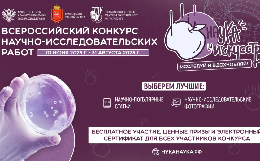 Мероприятие проводится в два этапа: Всероссийский конкурс научно-исследовательских работ «Наука и искусство» и фестиваль исследований и открытий «Ну-ка, наука!» — он пройдет с 18 по 22 октября на базе ФГБОУ ВО «Тульский государственный педагогический университет им. Л.Н. Толстого».