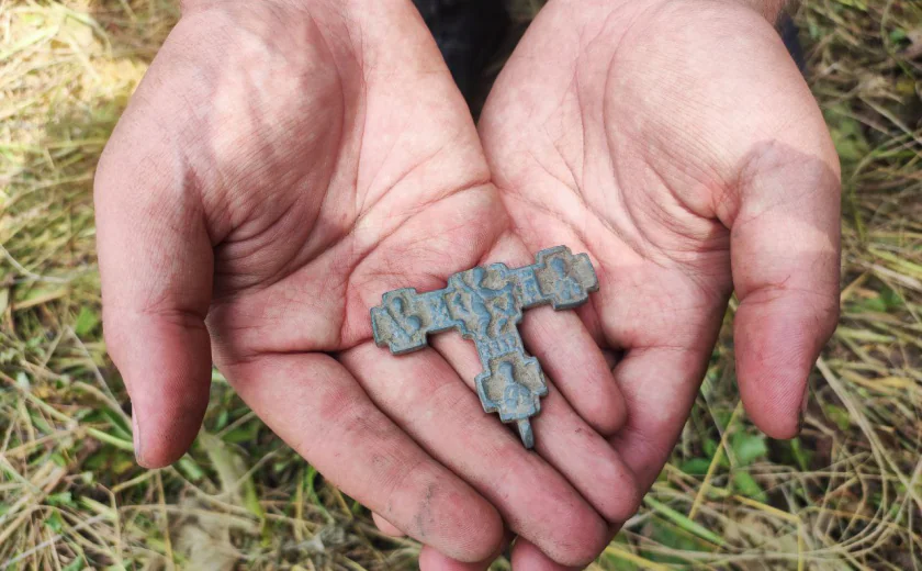 Довольно редкая вещь – энколпион из бронзы с изображением Никиты Бесогона – был найден на месте поселения, которое также датируется XIV-XV веками.