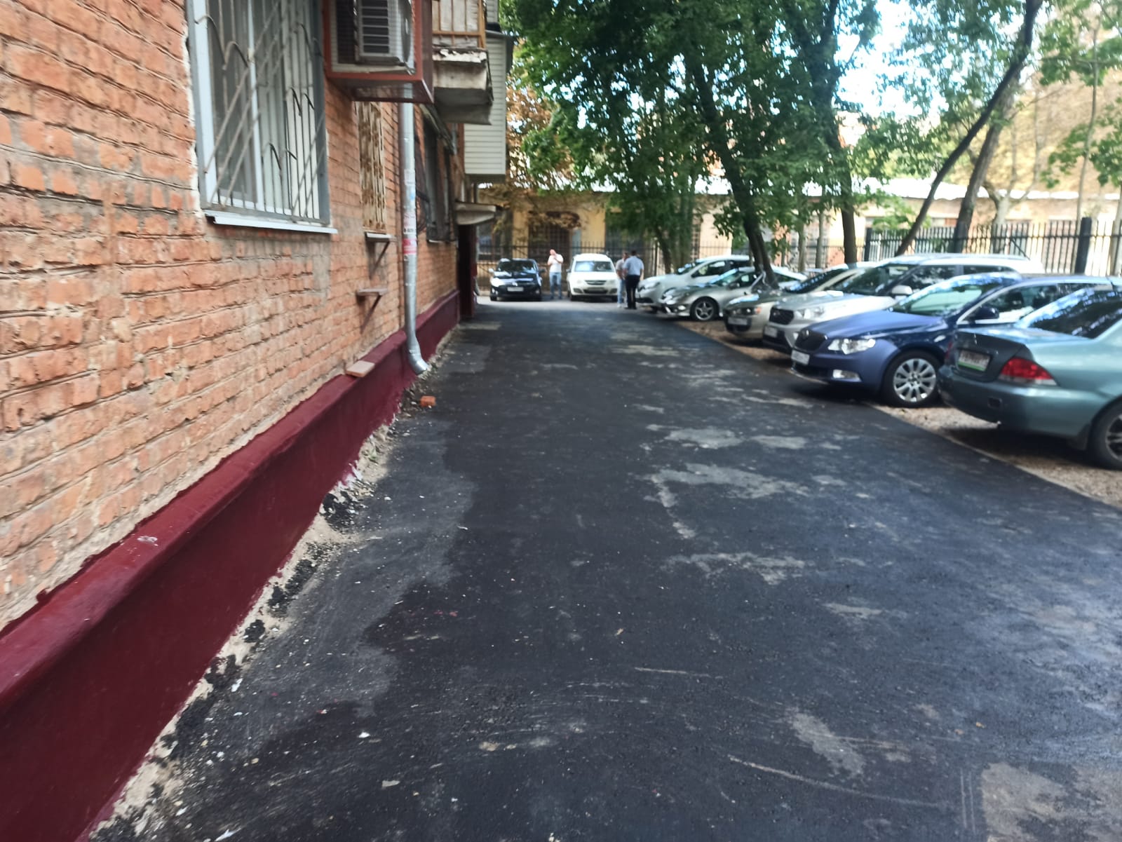 Председатель совета дома Андрей Павловский рассказал, что в рамках федеральной программы планировалось выполнить асфальтирование проезда и тротуарной дорожки. Жители дома приняли решение о необходимости расширения въезда на придомовую территорию и организации парковочных карманов. Анастасия Дементьева порекомендовала подать заявку на участие в проекте «Наш город». Благодаря участию в двух программах, жители дома получили благоустроенный двор.