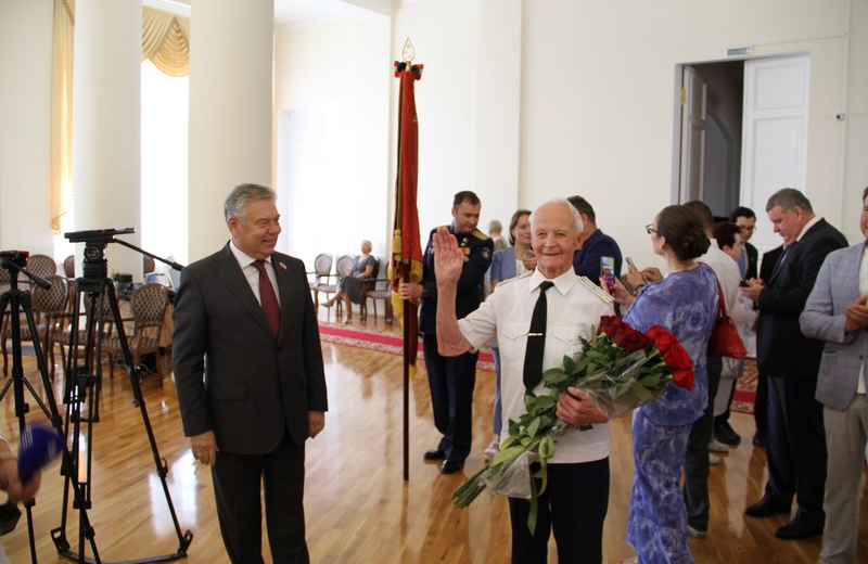 Председатель облдумы пожелал юбиляру здоровья, бодрости и как можно дольше быть в строю, чтобы молодое поколение ощущало связь поколений, которая так необходима сейчас.