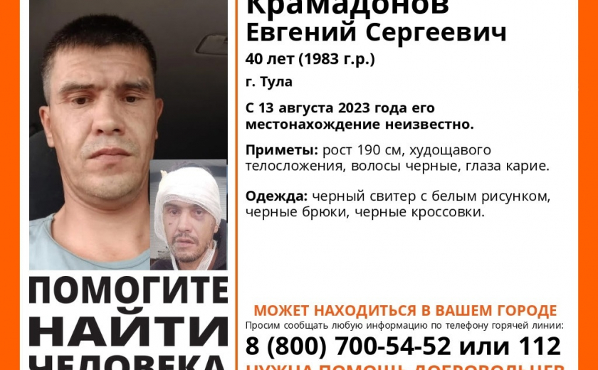 В Туле ведутся поиски 40-летнего Евгения Крамадонова. Как сообщает поисковый отряд «ЛизаАлерт», местонахождение мужчины неизвестно с 13 августа.