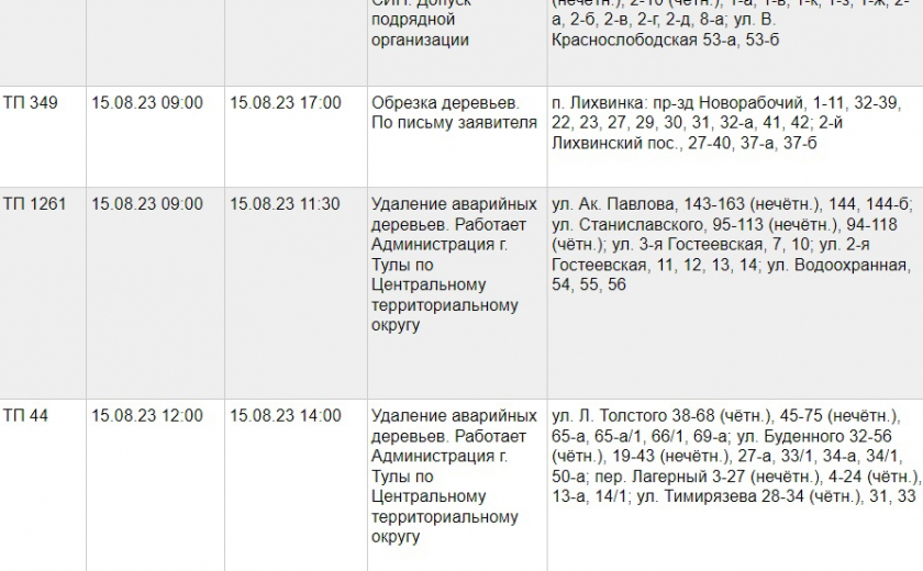 В Туле во вторник 15 августа жителей нескольких улиц ждут плановые отключения электричества. Об этом сообщают «Тульские городские электросети».