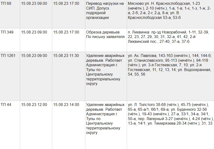 В Туле во вторник 15 августа жителей нескольких улиц ждут плановые отключения электричества. Об этом сообщают «Тульские городские электросети».