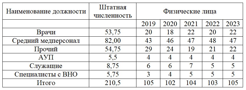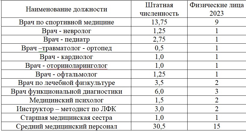 Кадровое обеспечение отделений ГУЗ «Тульский областной центр медицинской профилактики и реабилитации им. Я. С. Стечкина»