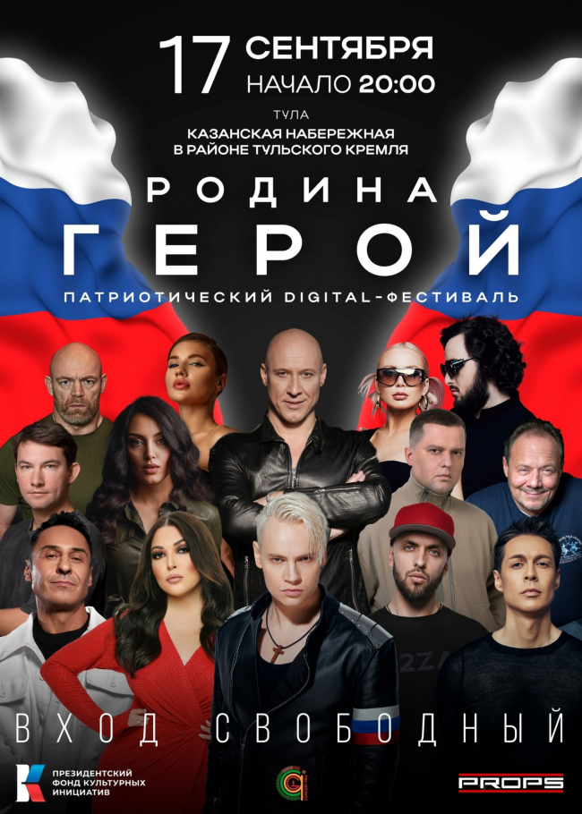 В воскресенье, 17 сентября, на Казанской набережной в Туле выступят цифровые проекции звёзд в рамках digital-фестиваля «РОДИНА — ГЕРОЙ!» (6+).
