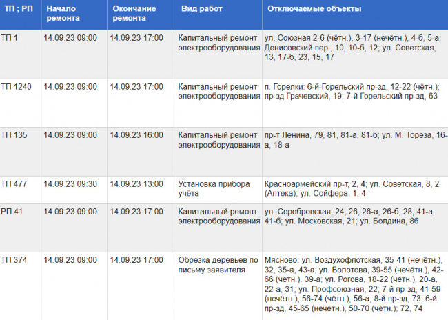 Публикуем все адреса, где сегодня не будет света.