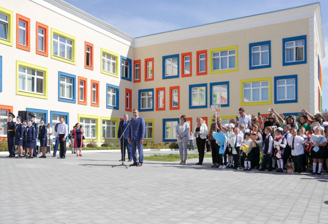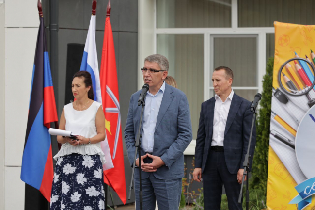 День знаний отпраздновали и в Мариуполе: в Орджоникидзевском районе учеников приняла школа, восстановленная тульскими строителями. От имени губернатора Алексея Дюмина школьников и педагогов с Днем знаний поздравил его первый заместитель Дмитрий Миляев.
