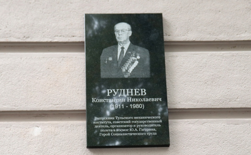 В понедельник, 25 сентября, в Туле прошла торжественная церемония открытия мемориальной доски известному государственному деятелю, конструктору, организатору работ в области вооружения, ракетно-космической техники и приборостроения, председателю Государственной комиссии по организации первого полета человека в космос Константину Николаевичу Рудневу.