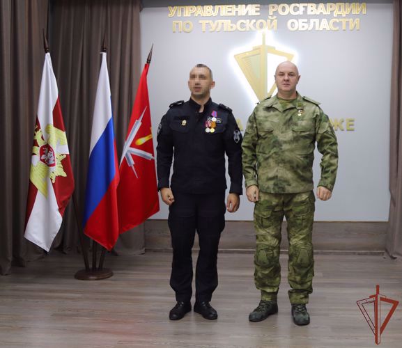 Ряд тульских росгвардейцев получили медали «За отличие в охране общественного порядка». Вячеслав Пытков выразил им благодарность за смелость, решительность и профессионализм.