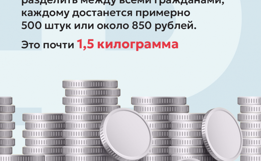 Сейчас в обороте находится почти 71,8 млрд монет. Если разделить их между всеми россиянами, то каждый получит около 500 штук. Это 1,5 килограмма веса или 850 рублей в пересчете на деньги.
