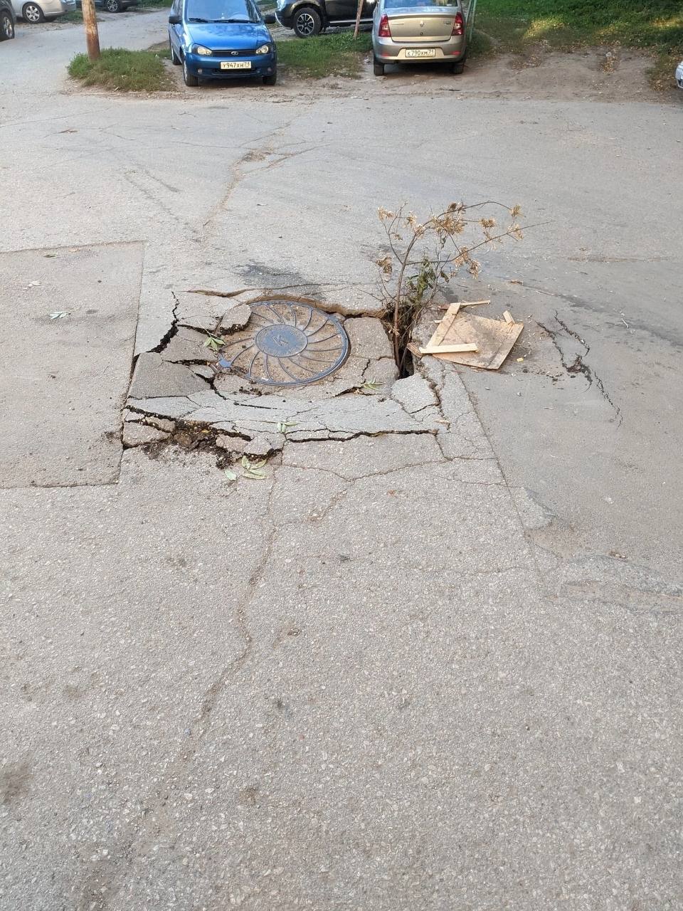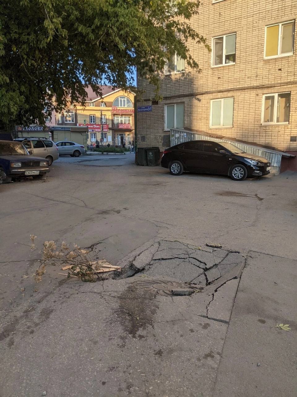 В комментариях жители предположили, что ЧП случилось из-за провала грунта — вероятно, внизу проходят коммуникации.