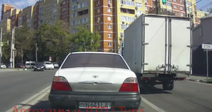 «Ударил задом и свалил. <…> Daewoo Nexia на светофоре съехала назад, в КИА Cerato и потом скрылась. В ГИБДД культурно послали — сказали, что у них нет базы на такие номера, так что, если только патруль остановит, тогда и будет результат», — рассказали в социальных сетях.
