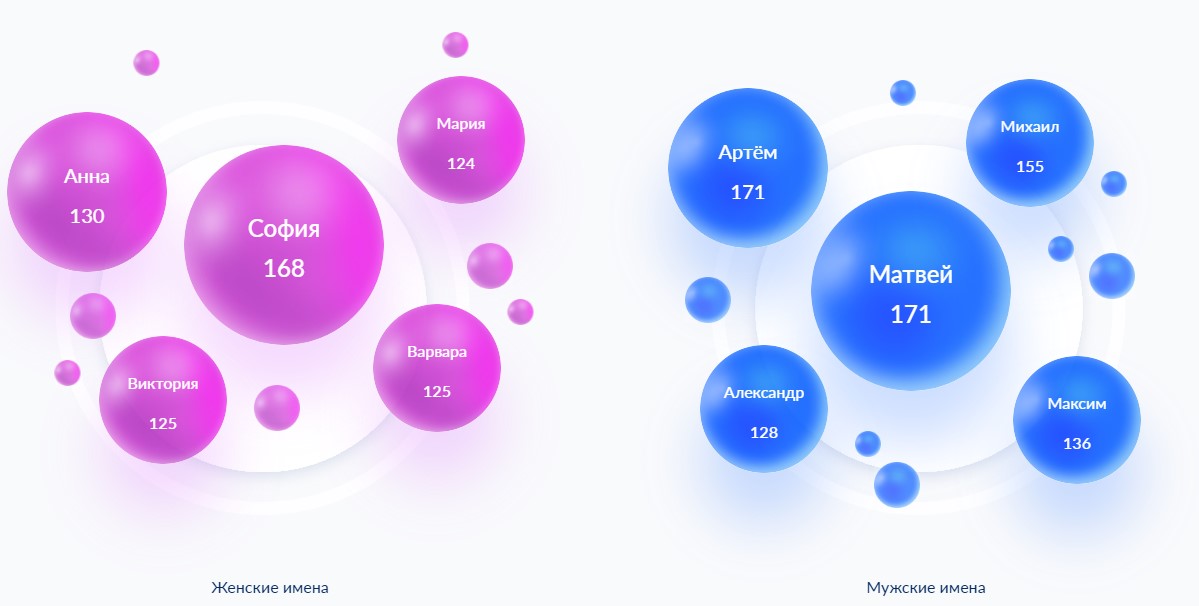Также на портале ЕГР ЗАГС можно увидеть топ-5 популярных имен в каждом российском субъекте или по стране в целом за 2021/2023 годы.