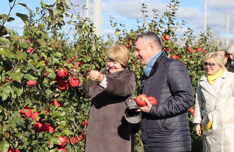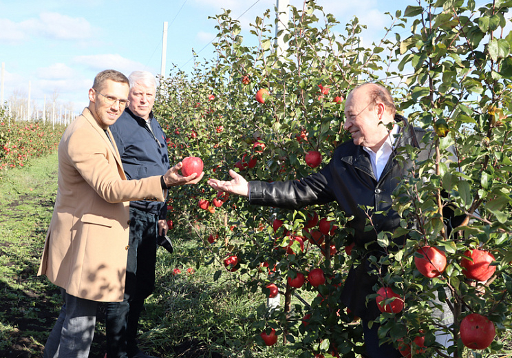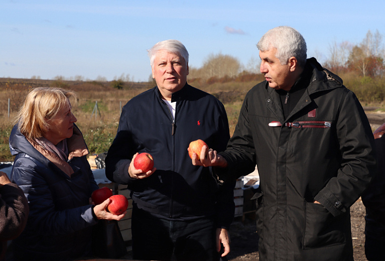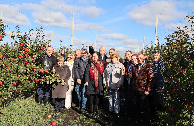 Первые результаты реализации инвестиционного проекта, поддержанного главой региона, впечатляют. Депутаты с интересом осмотрели сад, в котором стройными рядами расположены буквально усыпанные яблоками невысокие деревца. Сорта – самые разные, и раннего, и позднего созревания, есть плоды и покрупнее, и помельче, алые, бордовые, малиновые. Даже смотреть – удовольствие, и вкус – потрясающий.