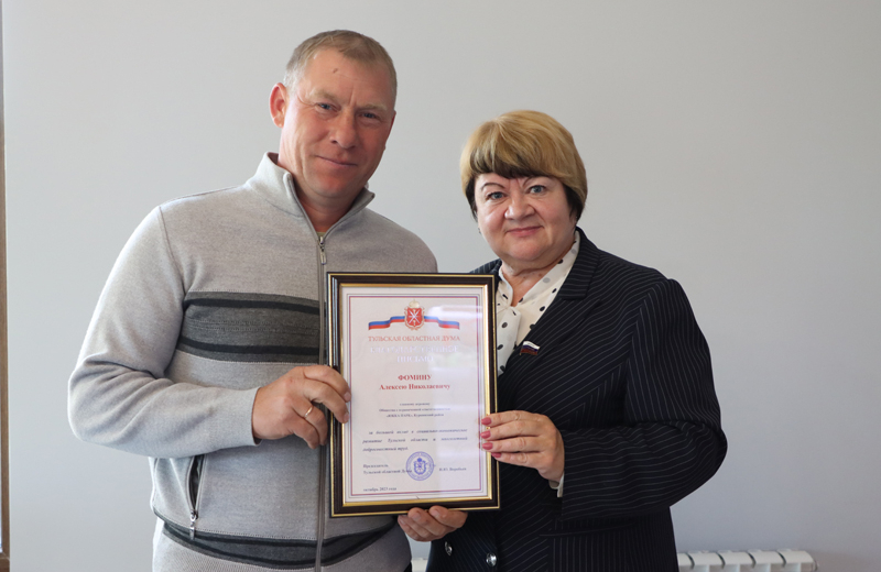 Ну, а поскольку буквально на днях в нашей стране отмечался День работника сельского хозяйства и перерабатывающей промышленности, в завершение программы рабочей поездки сотрудникам куркинских предприятий вручили награды Тульской областной Думы.