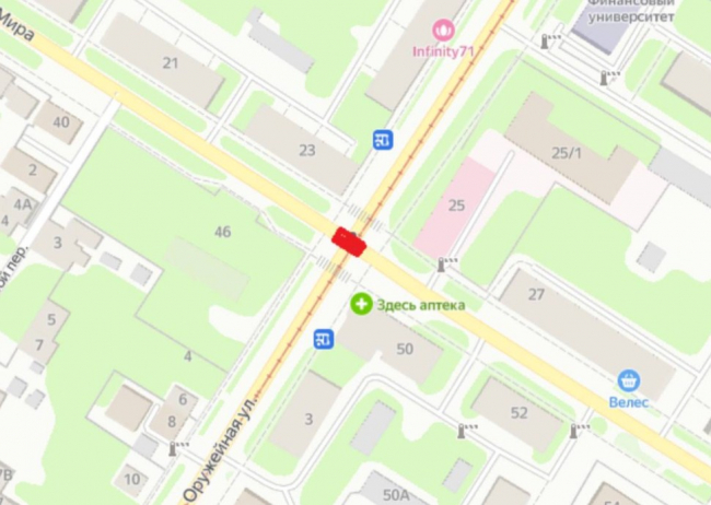 - запрещена остановка и стоянка, а также движение всех видов транспорта с 08:00 до 22:00 на пересечении ул. Оружейная и ул. Мира.