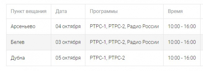 Со 2 по 8 октября в Тульской области возможны кратковременные перерывы трансляции теле — и радиосигнала каналов и радиостанций, которые передают на станции в следующие населенные пункты: