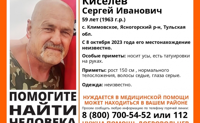 Всем кому что-либо известно о Киселеве Сергее Ивановиче просят передать информацию по телефону горячей линии 8 (800) 700-54-52 или по номеру 112.