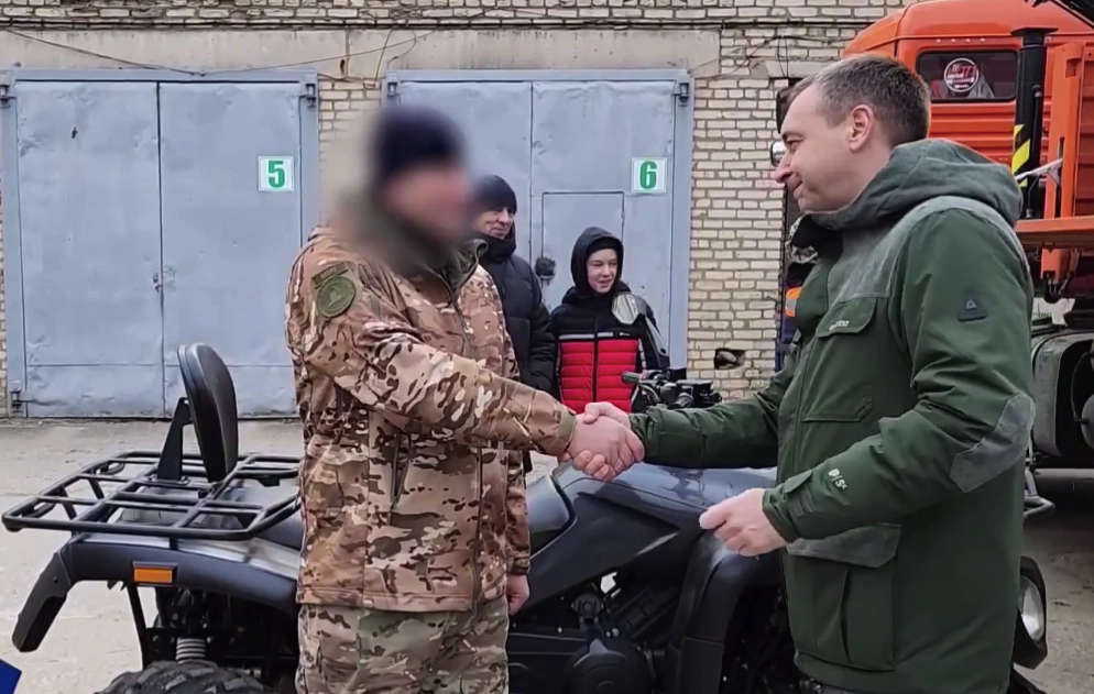Глава Алексина Эдуард Эксаренко и руководитель администрации Павел Федоров передали квадроцикл военнослужащему, отбывающему после отпуска в расположение части.