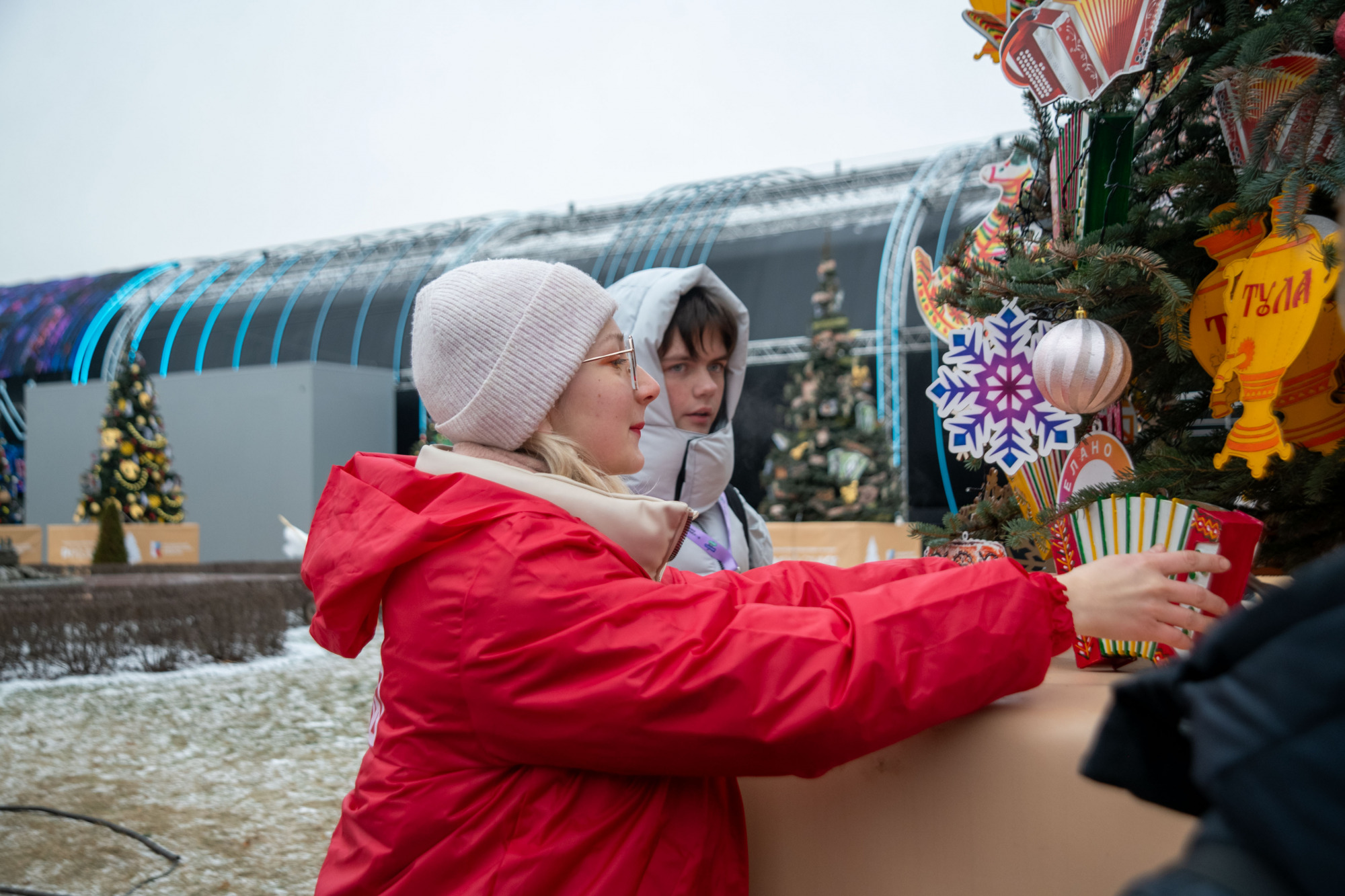 Нашу елки украсили фигурки гармоней, самоваров, пряников, ажурные снежинки с орнаментами белевского кружева и яркие святочные звезды. Участие в работе принимали тульские волонтеры гостеприимства. Они помогли желающим выбрать туристические маршруты по региону.
