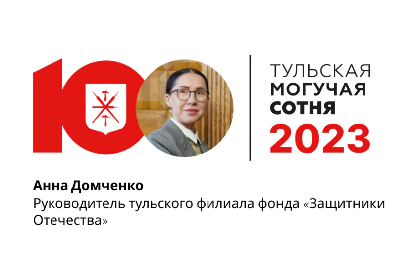 За координацию и активное участие в работе по поддержке участников СВО и их семей, совершенствование службы оказания помощи этим категориям граждан Анна Домченко занимает 72-е место в «Тульской могучей сотне».