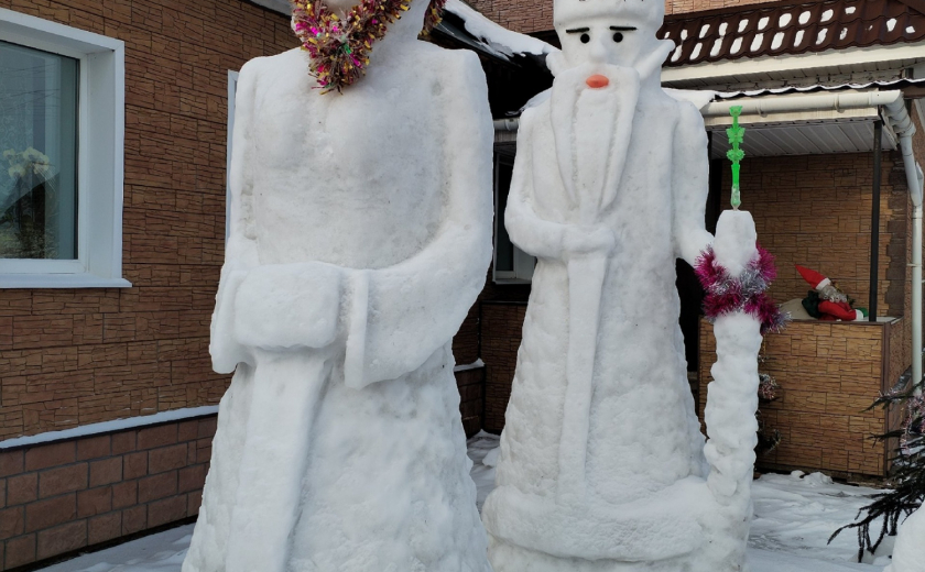По ее словам, создателем скульптур является местный житель по имени Николай Коренков. Мужчина каждый год украшает снежными фигурами территорию возле своего дома и дарит соседям новогоднее настроение.