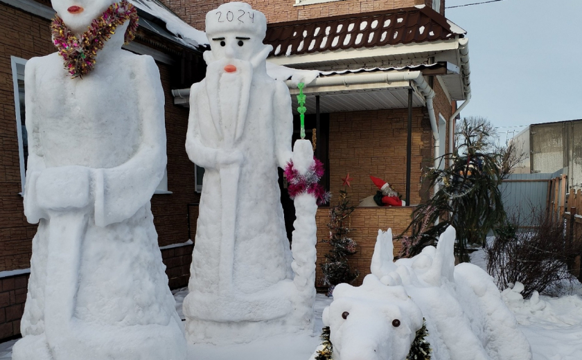 По ее словам, создателем скульптур является местный житель по имени Николай Коренков. Мужчина каждый год украшает снежными фигурами территорию возле своего дома и дарит соседям новогоднее настроение.