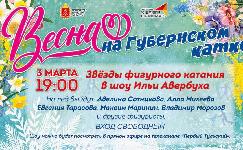 3 марта в Туле стартует «Весна на Губернском катке». По приглашению губернатора Алексея Дюмина в этот день здесь пройдет шоу Ильи Авербуха. На лед выйдут звезды фигурного катания: Аделина Сотникова, Виктория Синицина и Никита Кацалапов, Евгения Тарасова, Максим Маринин и Владимир Морозов.
