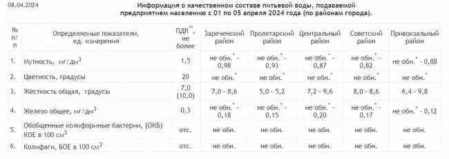 В представленную неделю самая жесткая вода была зафиксирована в Привокзальном округе Тулы. По остальным показателям вода не превышала нормативные значения ни в одном округе.