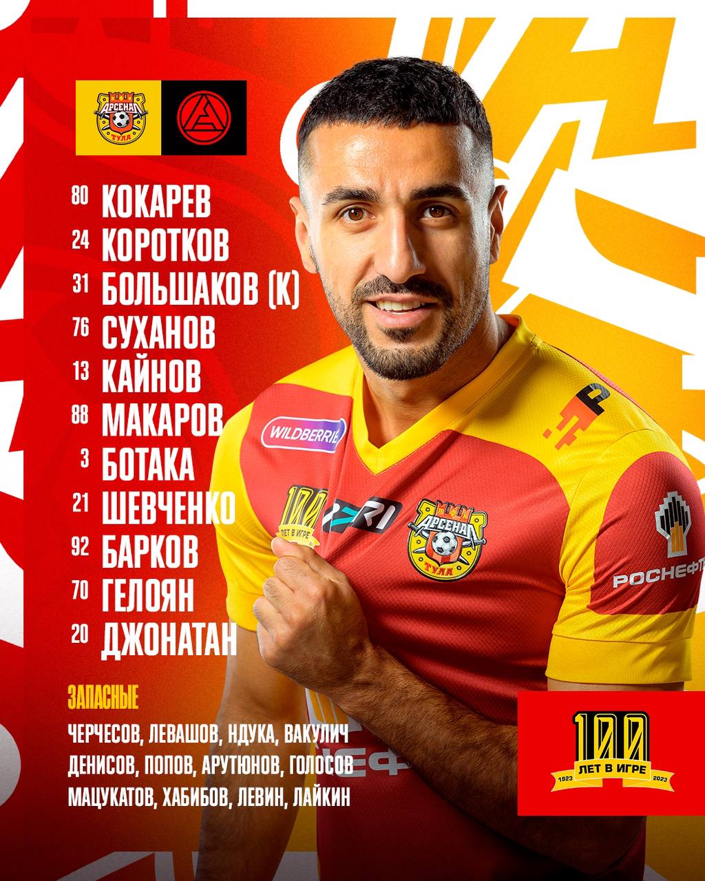 Ворота туляков защищает Никита Кокарев. Вместо травмированного Сергея Ткачева с капитанской повязкой вышел Кирилл Большаков. В стартовый состав также вошли Александр Коротков, Артем Суханов, Максим Кайнов, Анатолий Макаров, Эрвинг Ботака-Иобома, Евгений Шевченко, Дмитрий Барков, Ишхан Гелоян и Джонатан Окоронкво.