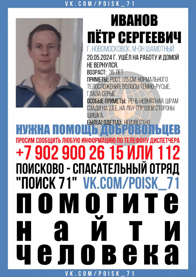 Всех, кому что-либо известно об Иванове Петре Сергеевиче, просят передать информацию по телефону горячей линии +7 (902) 900-26-15 или по номеру 112.