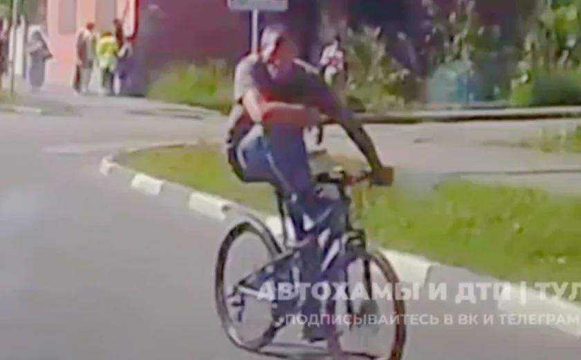 В Туле на ул. Болдина засняли странного велосипедиста. Инцидент попал на запись камеры видеорегистратора одного из участников движения. Ролик опубликовал телеграм-канал «Автохамы и ДТП | Тула».
