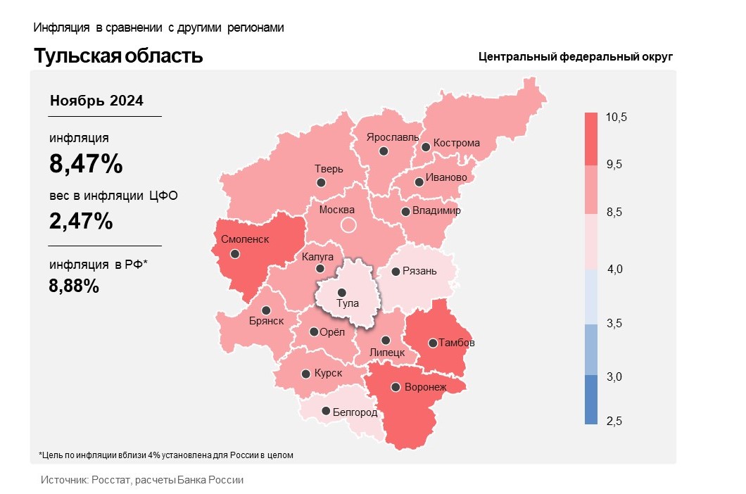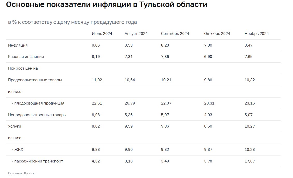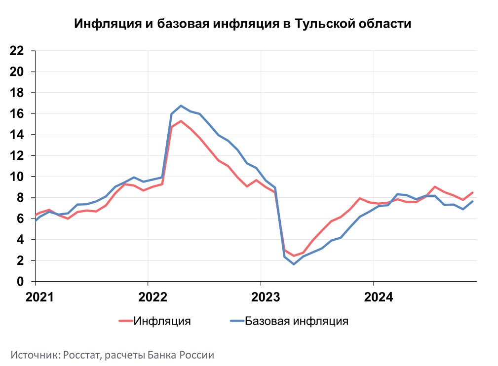 Базовая инфляция в Тульской области выросла и составила 7,65%.
