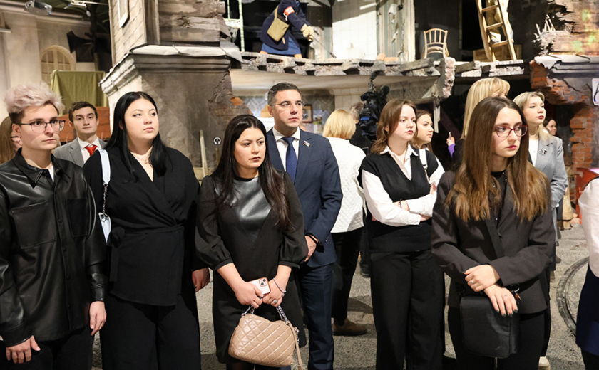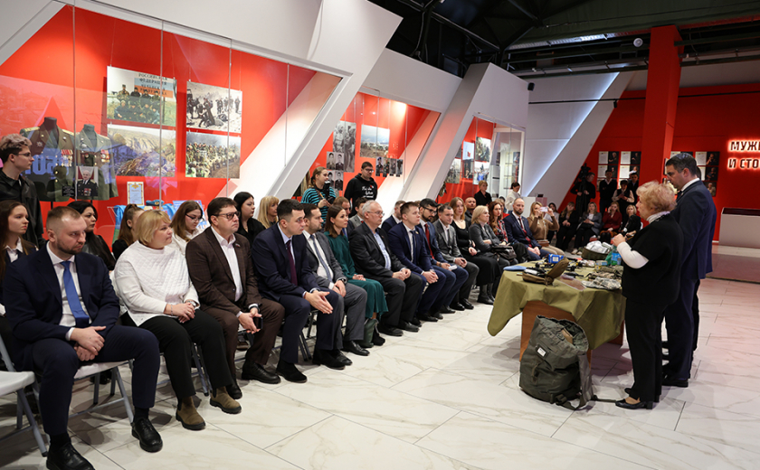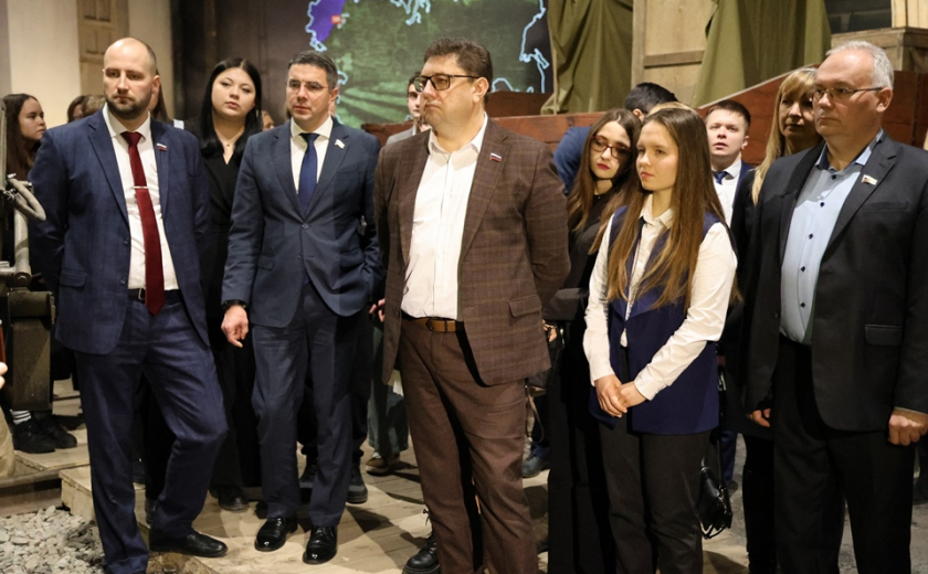 Вместе со студентами депутаты также посетили музей обороны, ознакомились с экспозицией. Алексей Эрк передал экспонаты, которые займут место в коллекции.