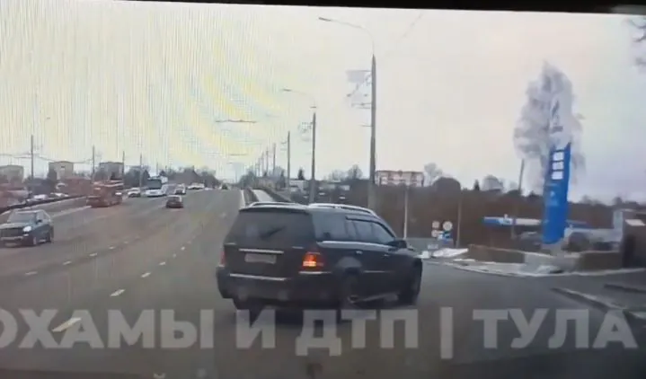 В Туле на Октябрьской улице возле Московского путепровода водитель джипа вовремя не перестроился в крайний правый ряд для поворота направо. Начав поворот слишком поздно, лихач «подрезал» другой автомобиль. Не уступив дорогу, он едва не стал виновником ДТП.