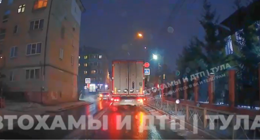 В Туле 15 февраля на видео был запечатлен инцидент с участием грузовика с полуприцепом из 48-го региона, который снес знак «Пешеходный переход» и нарушил Правила дорожного движения (ПДД), повернув под запрещающий знак. Видео с нарушением было опубликовано в социальной сети, сообществе «Автохамы и ДТП | Тула».