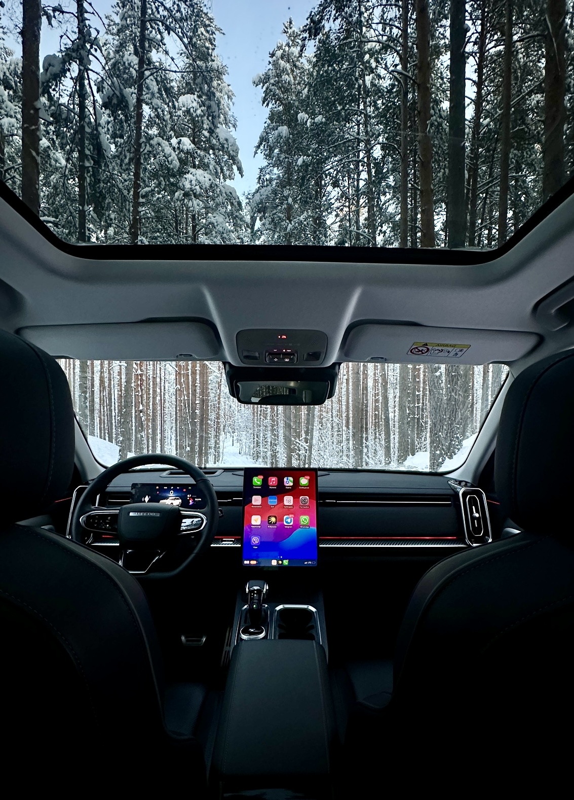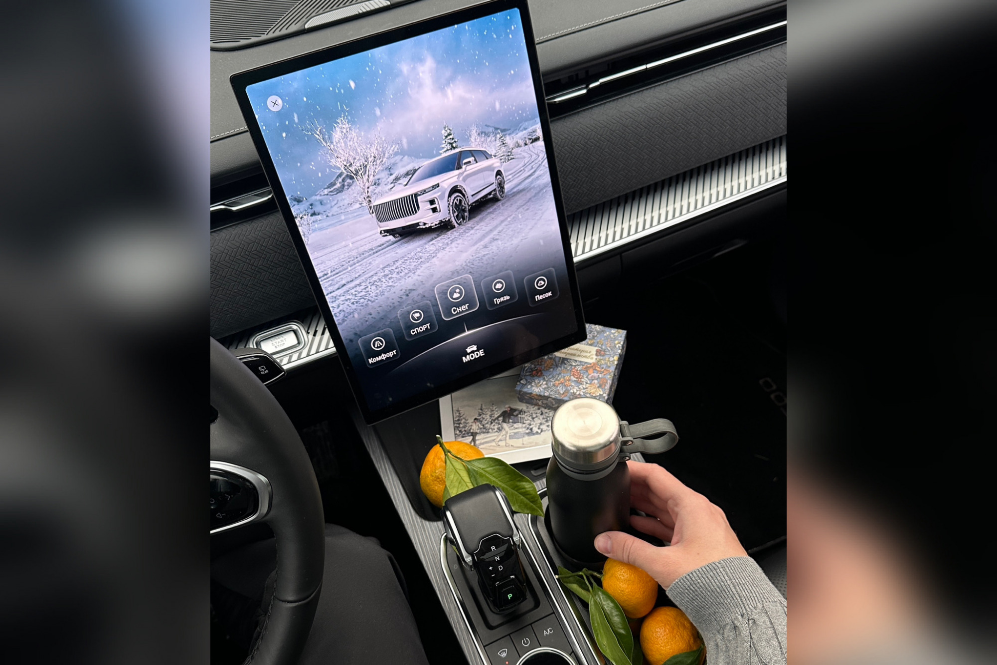 Но главные новшества спрятаны внутри. И это уникальная система телематики автомобиля. Используя мобильное приложение можно запускать и глушить двигатель, проверять пробег и давление в шинах, открывать и закрывать машину, опускать-поднимать стекла, люк и даже дверь багажника, включать обогревы и климатическую систему.