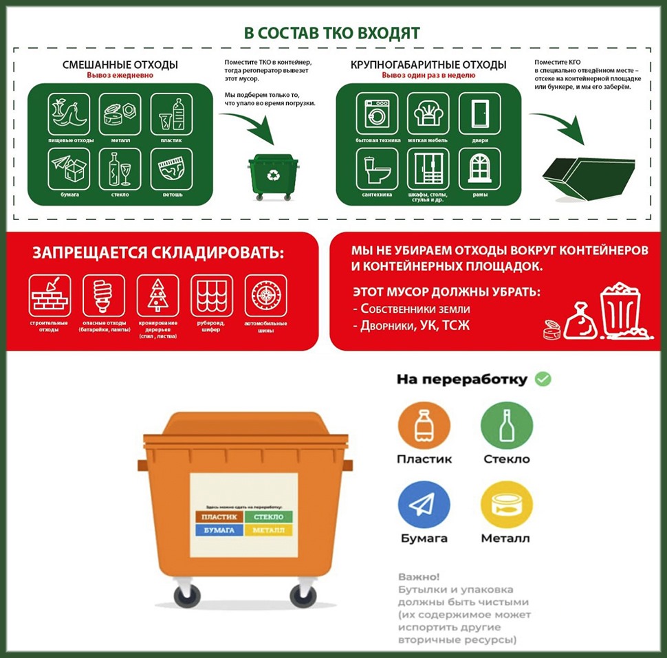 Сбор чистого вторсырья в специальные оранжевые баки позволяет ускорить его путь к переработке, сберечь природные ресурсы и сократить объемы захоронения.