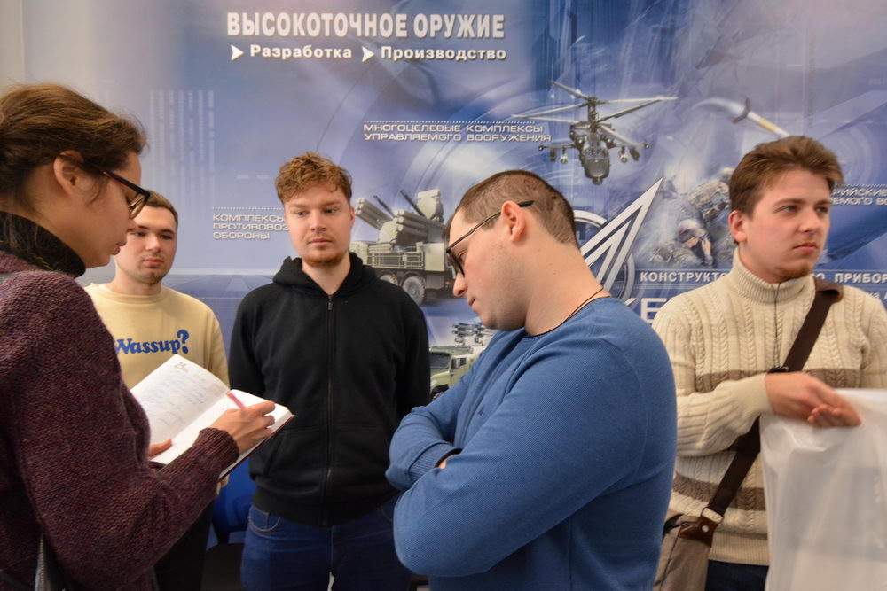 Студенты, ещё не определившиеся с местом дальнейшей работы, активно интересовались у специалистов кадровых служб АО «КБП», АО ЦКБА о возможности трудоустройства на предприятия холдинга «Высокоточные комплексы», и о том, как заключить договор на целевое обучение.