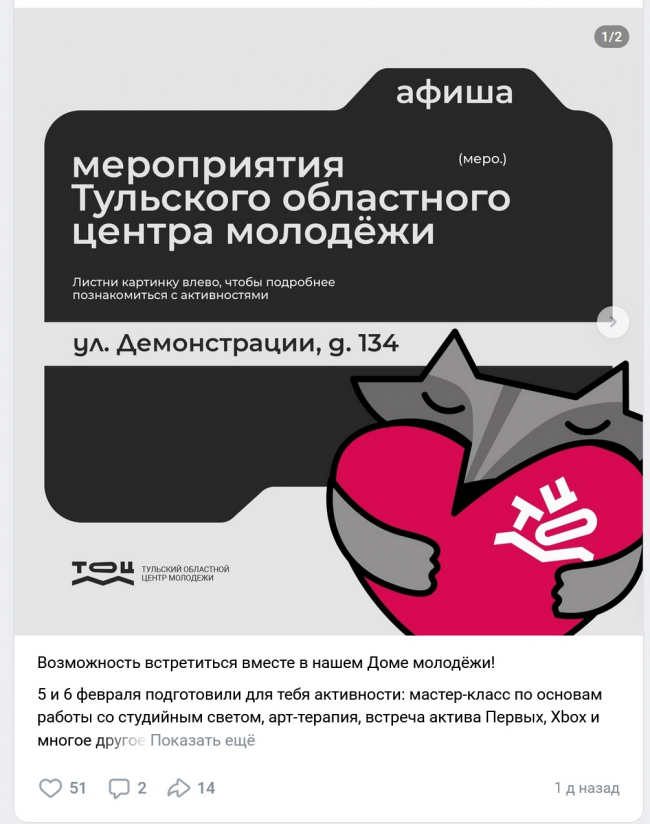 Теперь же со своих страниц в соцсетях Центр молодежи анонсирует мастер-классы и прочие досуговые мероприятия. Так, вчера, 5 февраля, разместили афишу на 5 и 6 февраля. Вот что ждало туляков: