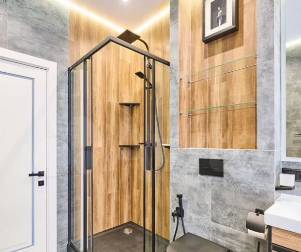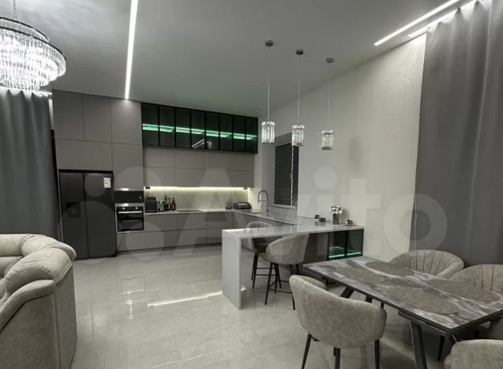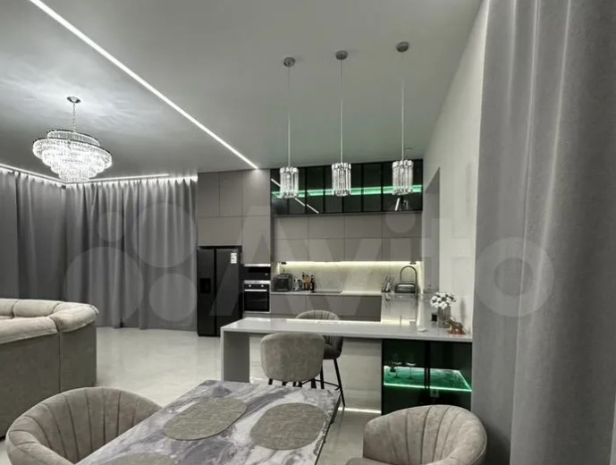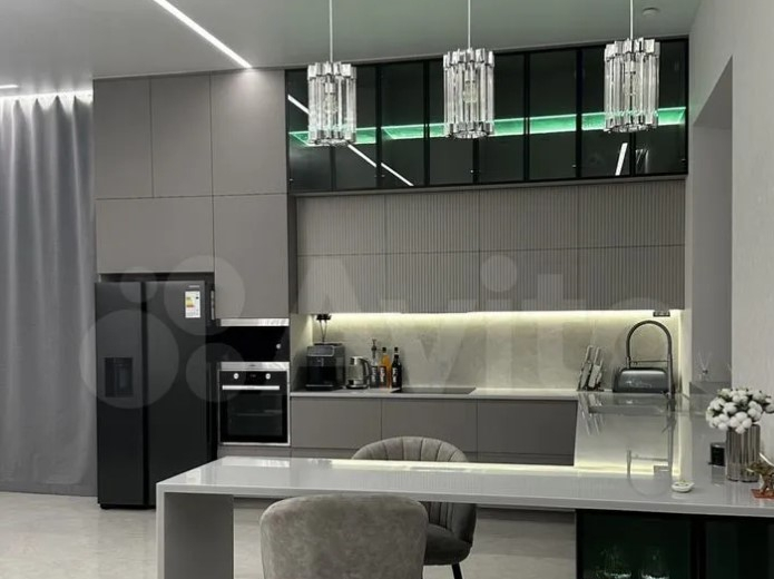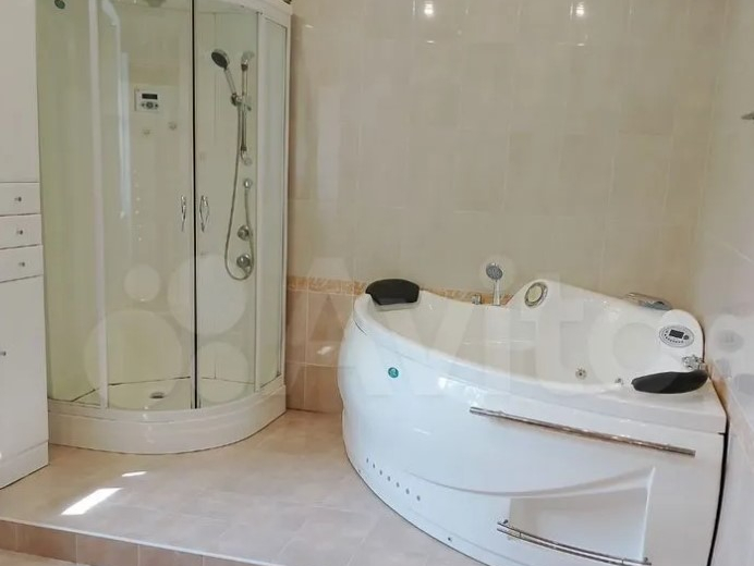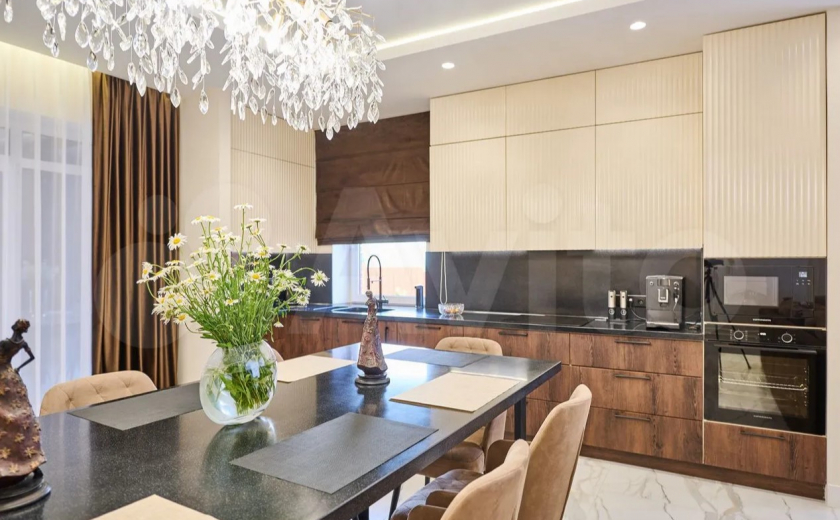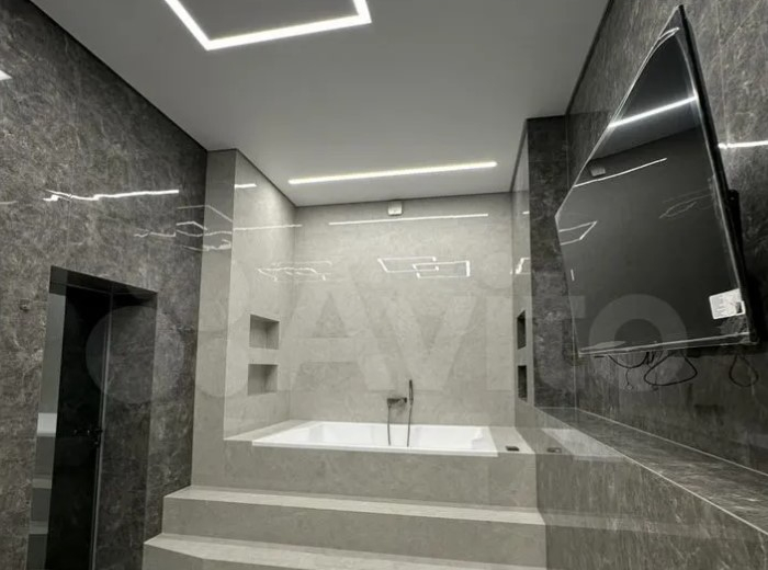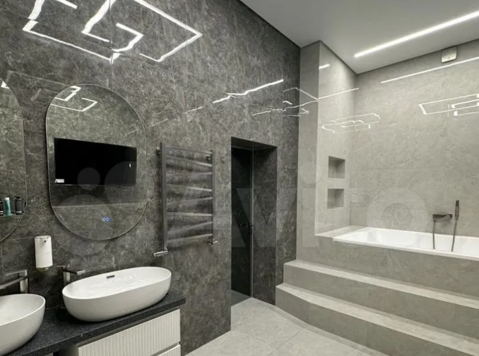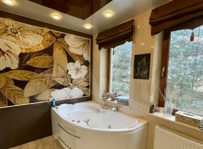 В доме выполнен дизайнерский ремонт. Для отделки использовались гранит, мрамор, дуб. Новому покупателю коттедж достанется со всей мебелью и встроенной техникой.