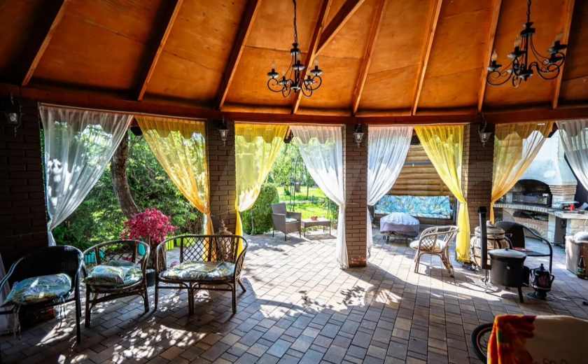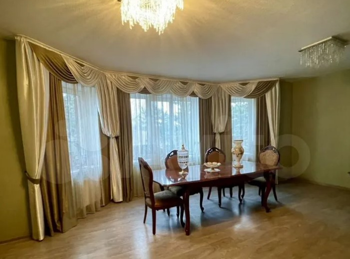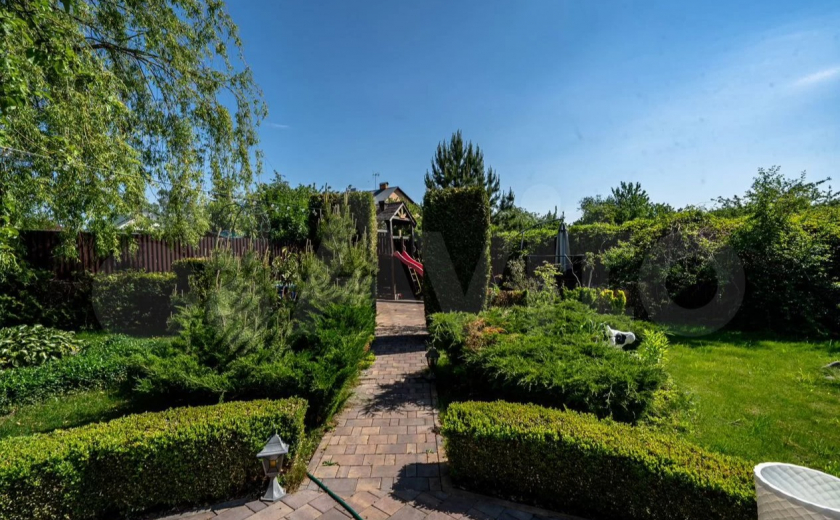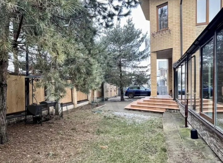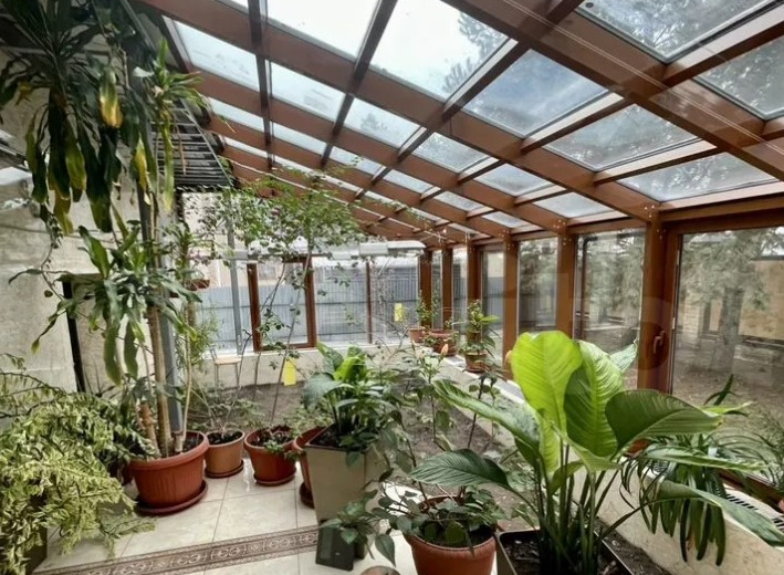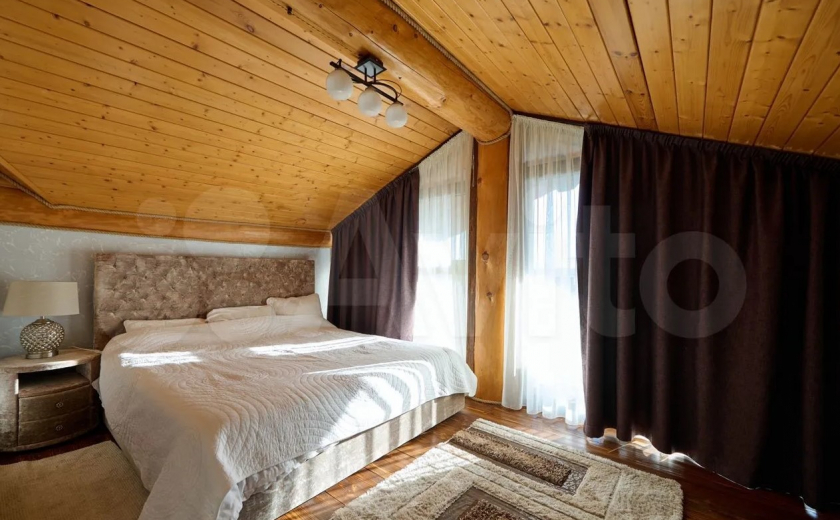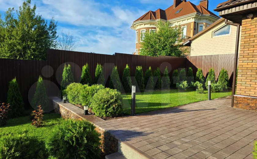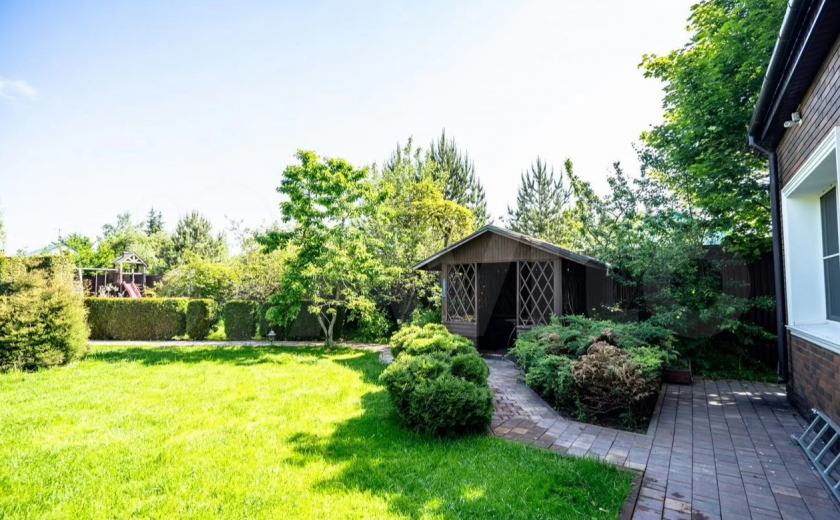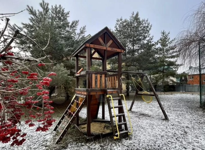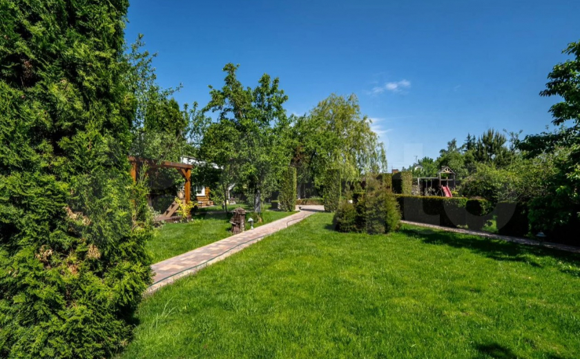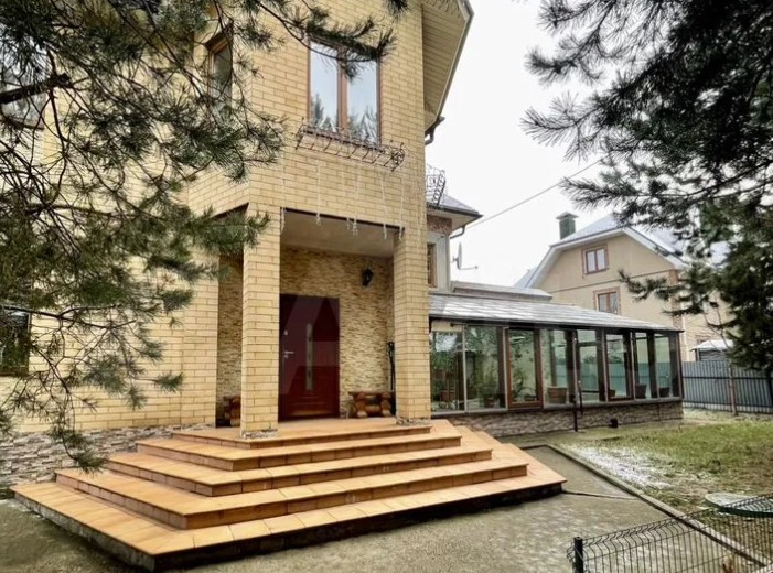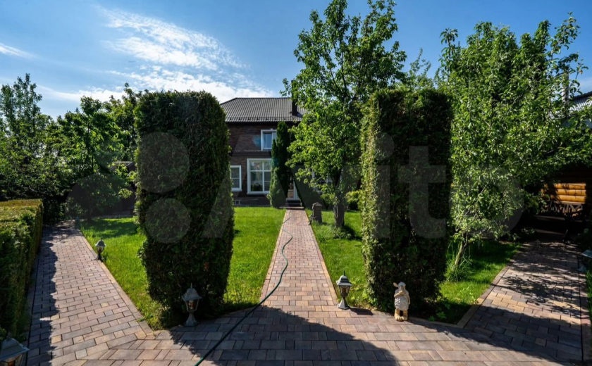 Дом расположен на 3-м Дачном проезде и продается за 32 млн рублей. На первом этаже расположены прихожая, холл, кухня-гостиная с выходом в зимний сад, зал, гостевая спальня, раздельные санузел и душевая, прачечная и бойлерная. Выше — четыре спальни, гардероб, ванная комната, душевая и два санузла. Есть мансарда с двумя комнатами. На участке расположены баня с бассейном в отдельной постройке, большая беседка и зона барбекю.