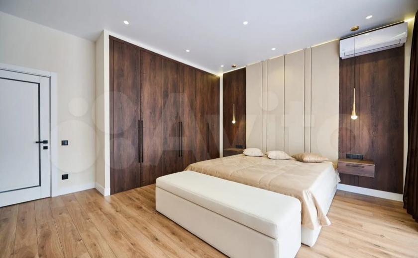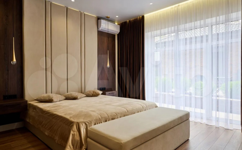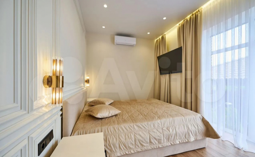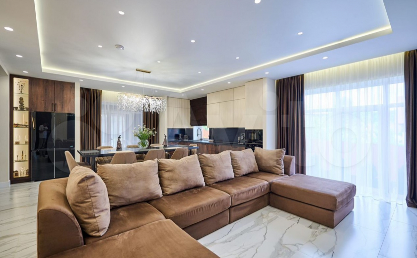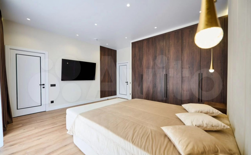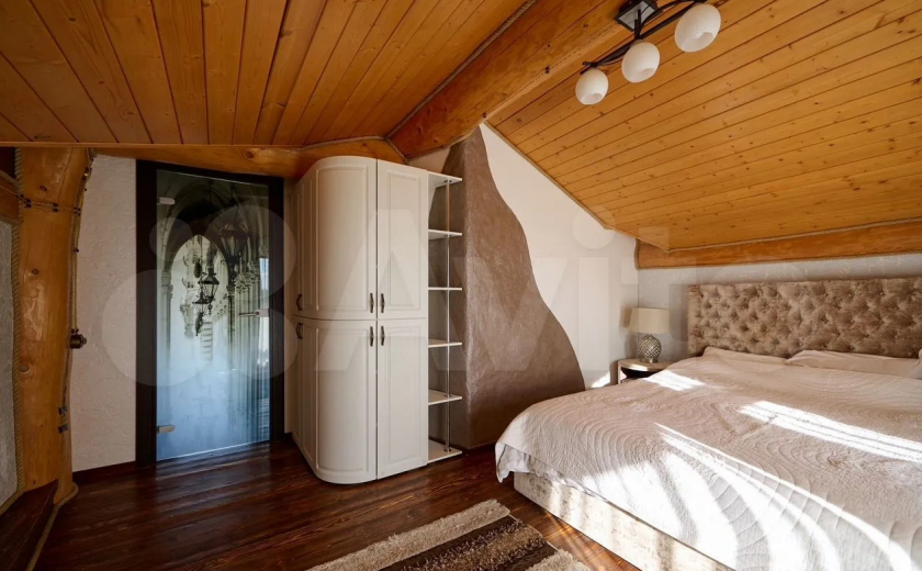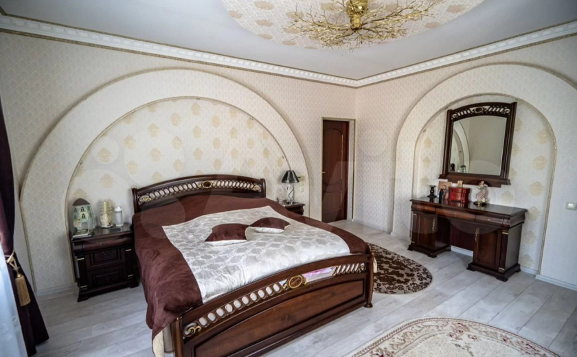Этот дом тоже находится в Басово-Прудном. Правда, стоит чуть дешевле — 49,99 млн рублей. У коттеджа всего один этаж. Внутри расположены гостиная, мангальная с зоной с казаном, гардеробная, две ванные комнаты и четыре спальни, домашний кинотеатр, панорамные окна. Выполнен дизайнерский ремонт. Мебель и техника остаются новому владельцу.