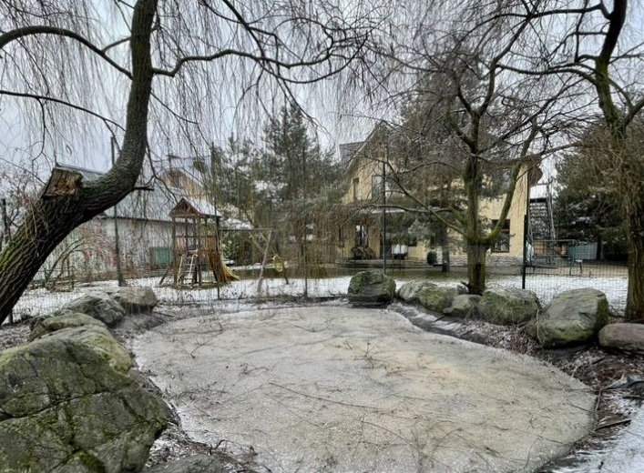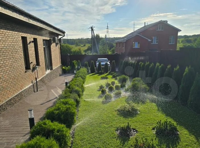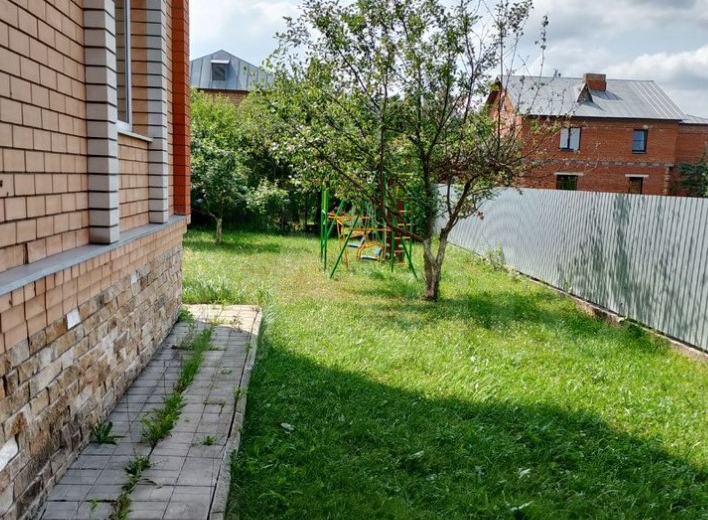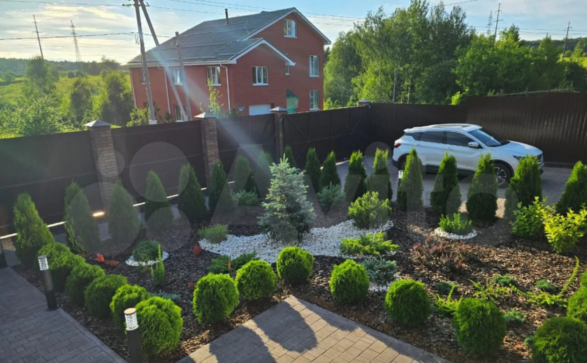 На участке есть зона барбекю, детская площадка, пруд с плакучей ивой, фруктовый сад с яблонями, грушами, смоковницами, грецким орехом, сливами, облепихой, малиной, ежевикой, смородиной, жимолостью и крыжовником. Оборудованы двухэтажный кирпичный гараж на две машины, две теплицы и домик для хозяйства.