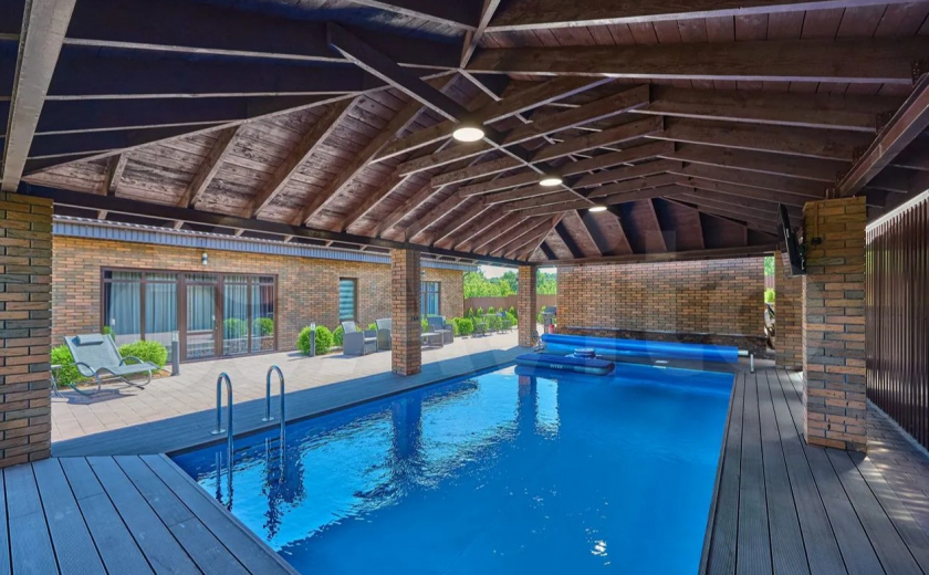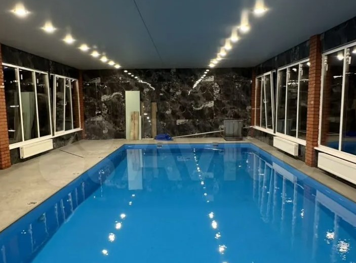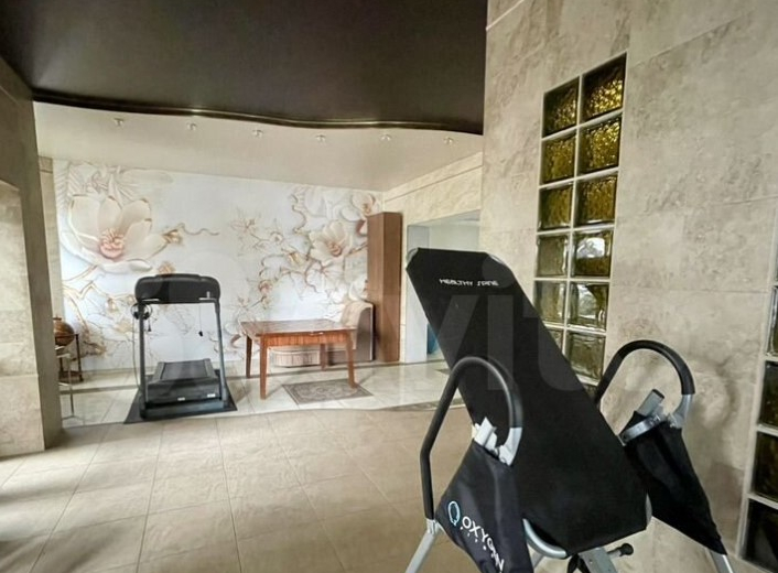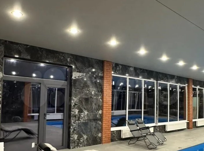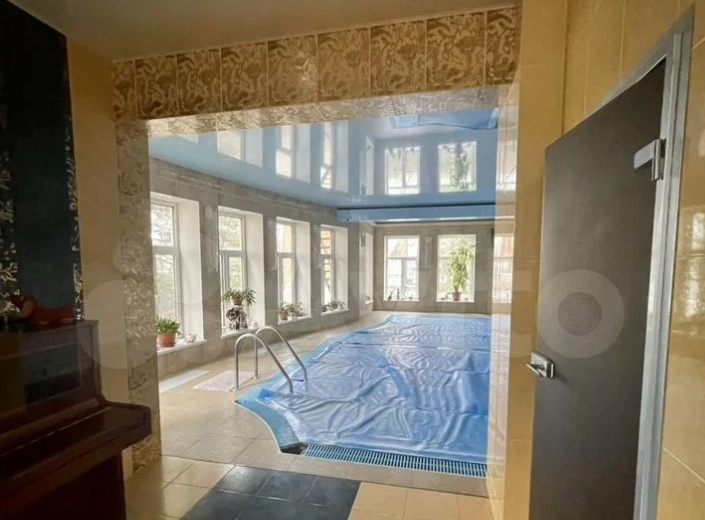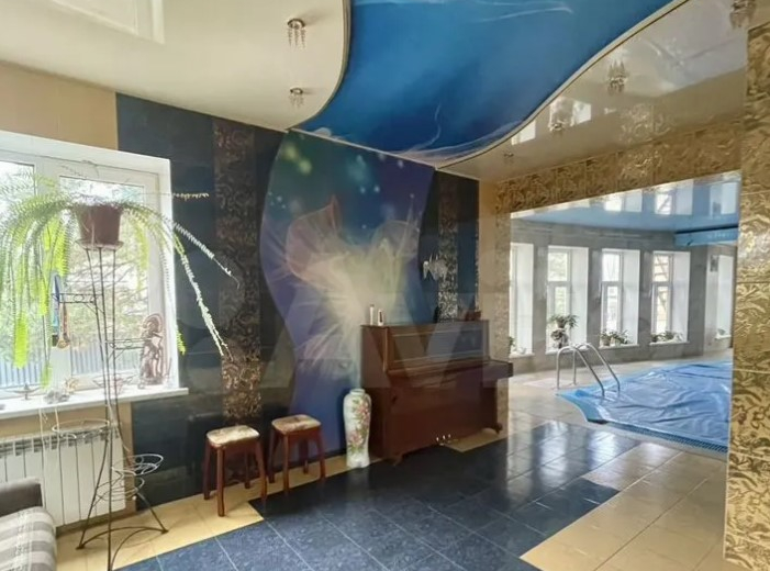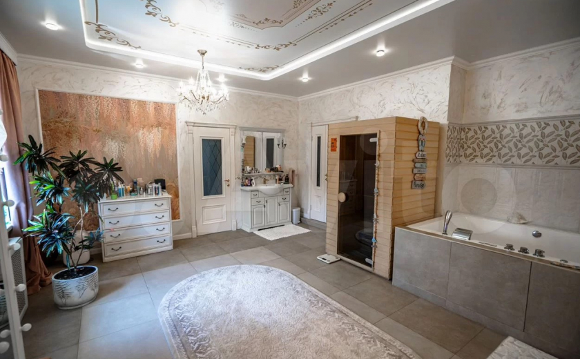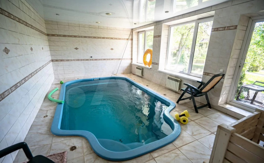 Коттедж расположен в тульском поселке Новая Мыза. Потенциальному покупателю он обойдется в 35 млн рублей. На первом этаже расположена зона отдыха с бассейном, сауной, санузлом, тренажерным залом, кухней и панорамным зимним садом.