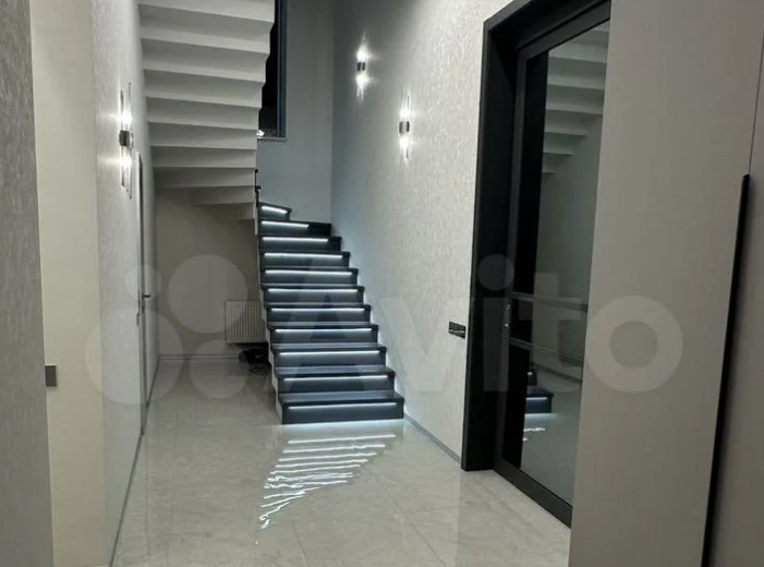 В самом доме есть бассейн с системой очистки воды и подогревом. Встроена система «Умный дом». В гараже помещаются два автомобиля, все двери в доме зеркальные, установлены полы с подогревом.