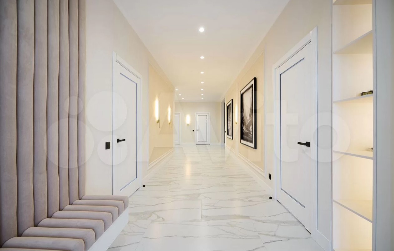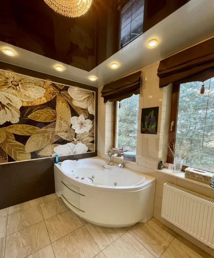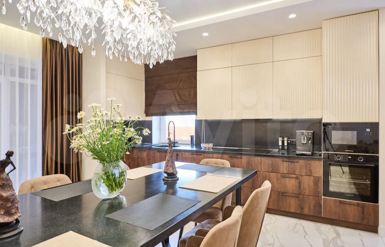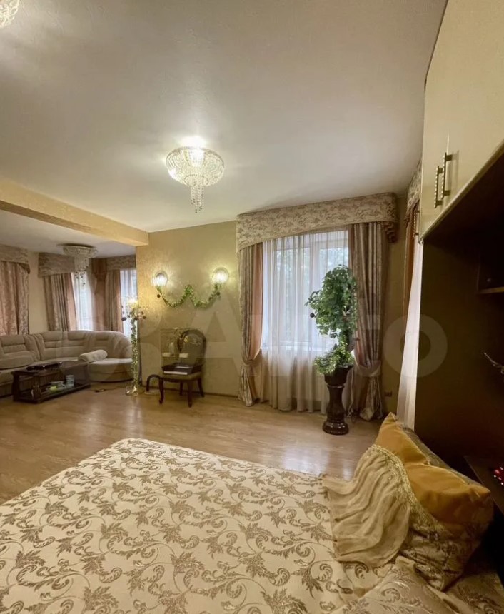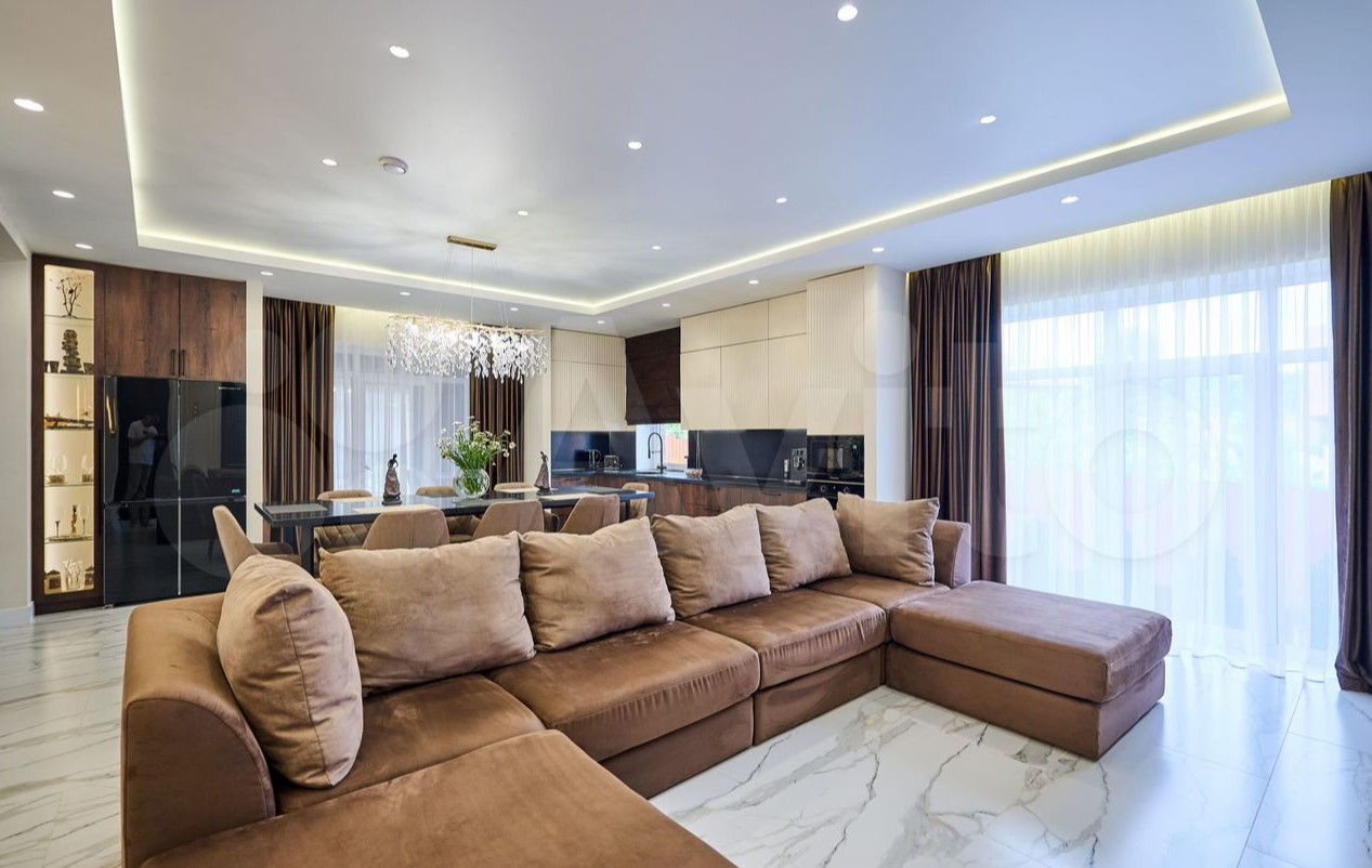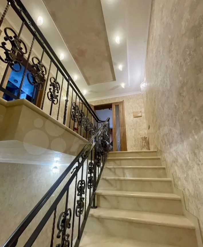 В доме выполнен дизайнерский ремонт. Для отделки использовались гранит, мрамор, дуб. Новому покупателю коттедж достанется со всей мебелью и встроенной техникой.